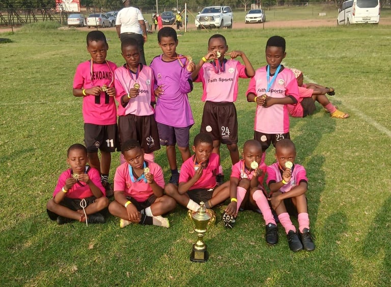 Faithsports U/9 participated in the 2025 Polokwane Human Rights Super Cup; played and won 4 matches before ultimately claiming the title. Congratulations to Our U/9 "Our very own men imof Faith,Seeds of Abraham".1"